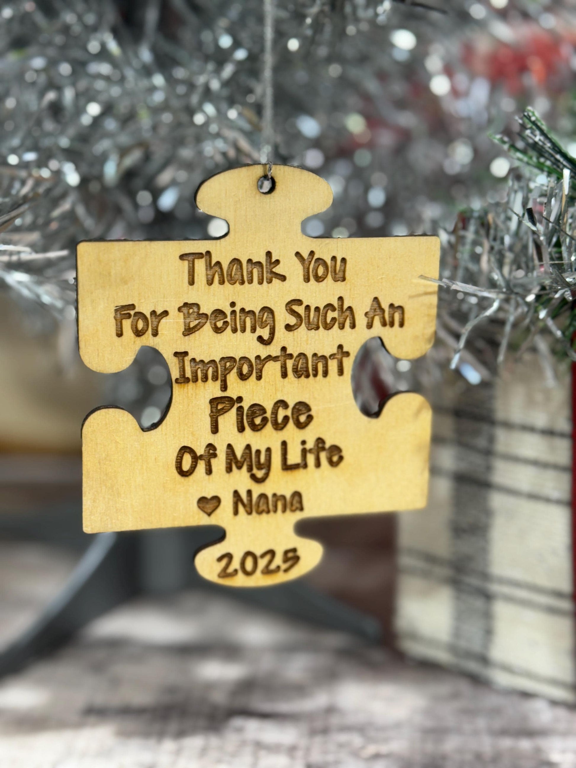 Kids keepsake Christmas ornament, Teacher gift, puzzle piece ornament, gift for grandparents, Christmas 2025, Important piece, personalized