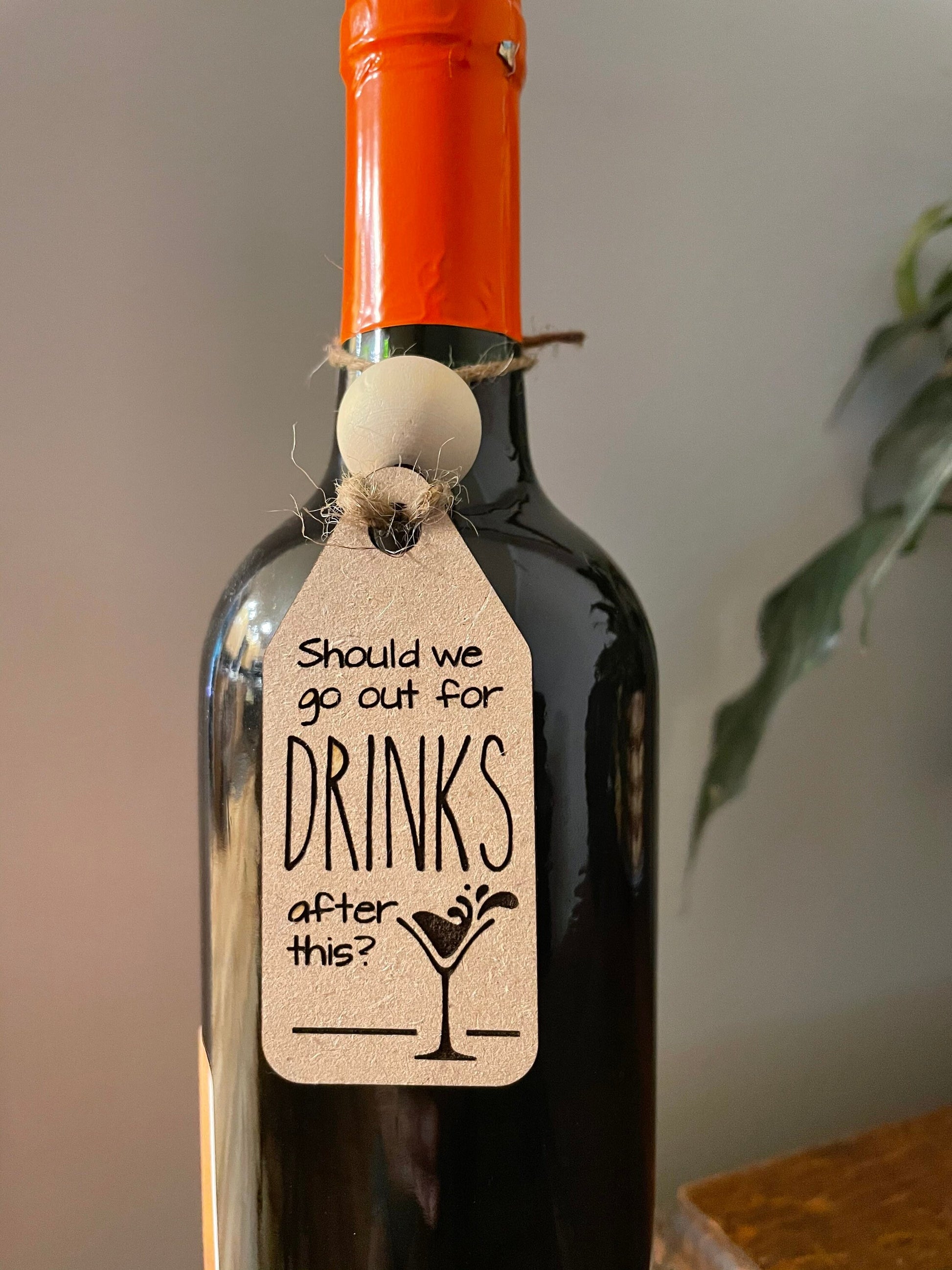 Wine tag, gift tag, bridal shower, wedding gift, wine charm, birthday, housewarming, hanger, stocking stuffer, christmas