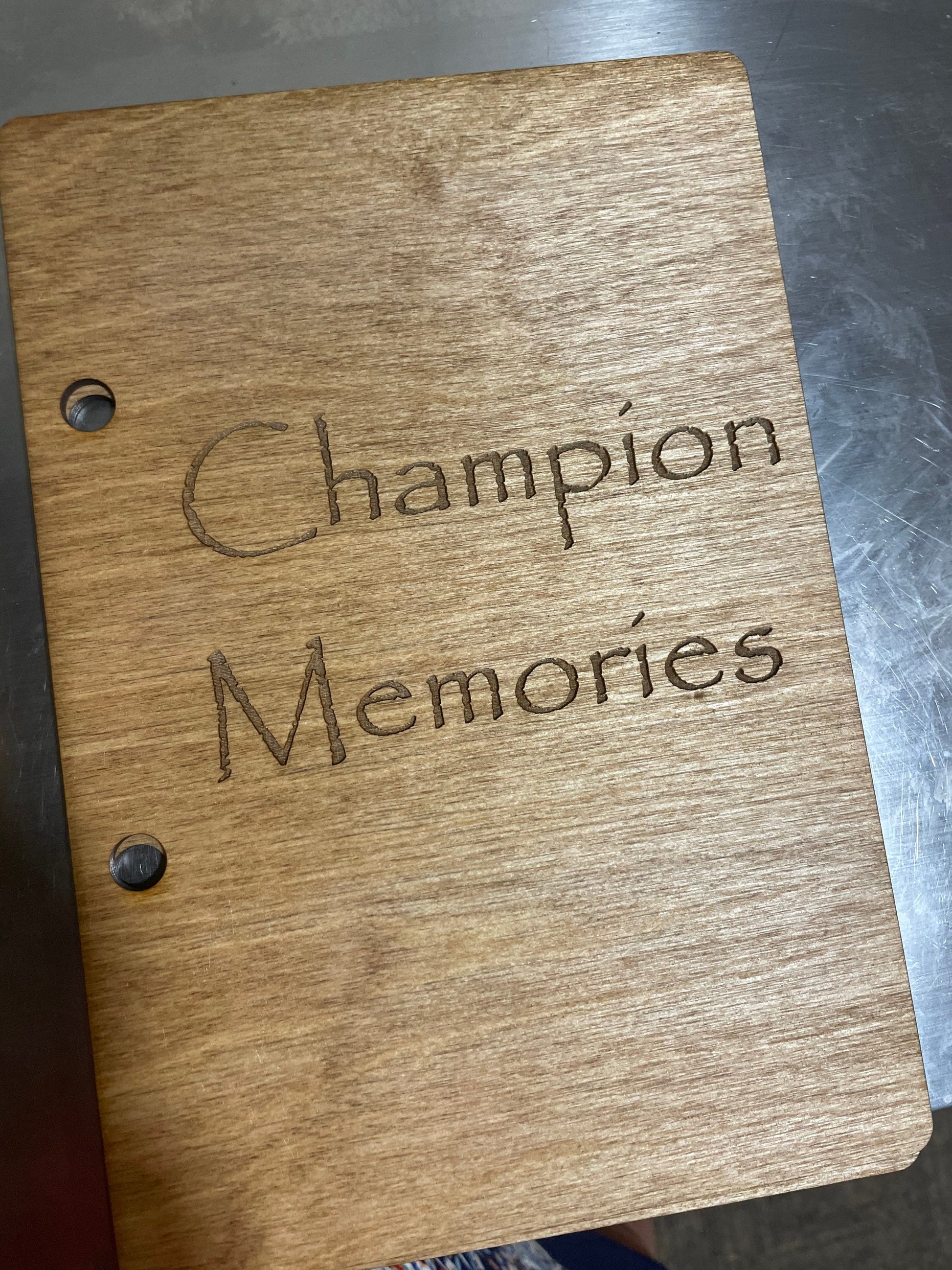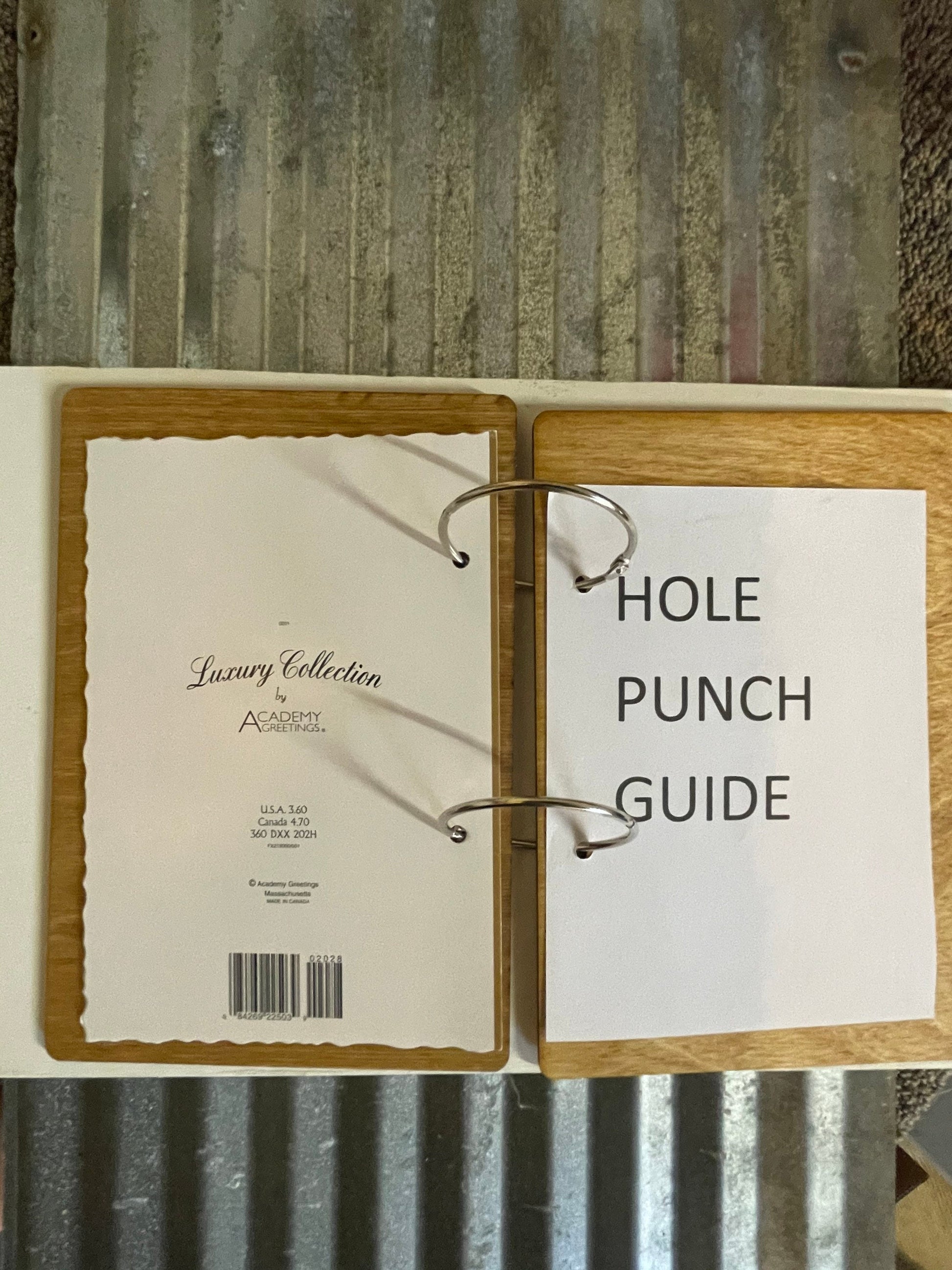 This Card Keeper is made with 1/8” Birch plywood, a light stain and engraved with your customization. It is held together with 2” binder rings